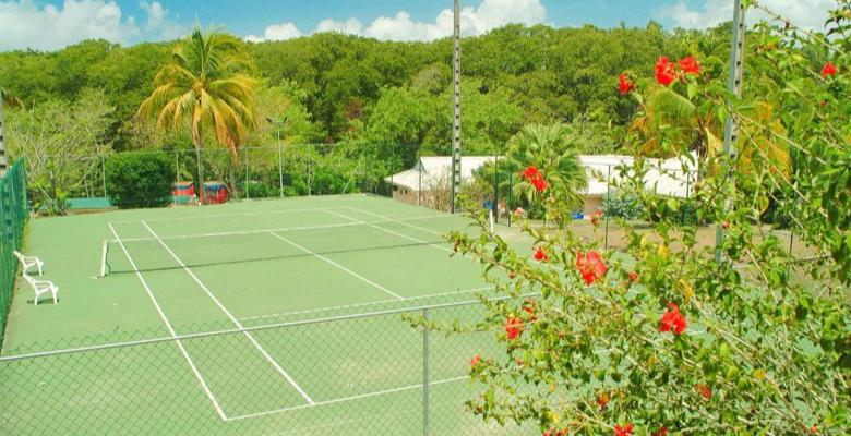 Autour d'un cadre fleuri et tranquille, une partie de tennis se propose à vous.